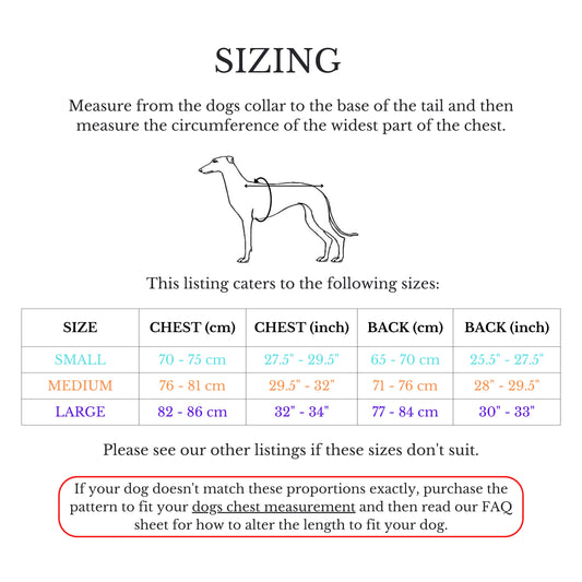 Our PDF downloadable sewing patterns are designed for beginners and easily modifiable to fit your pet!