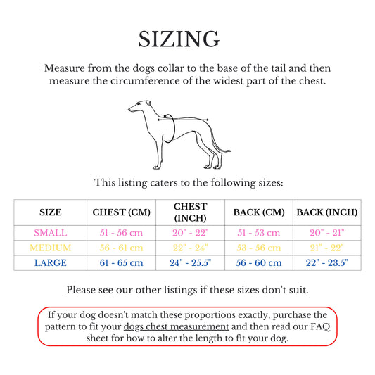Whippet 4-Leg Pyjamas in sizes S/M/L