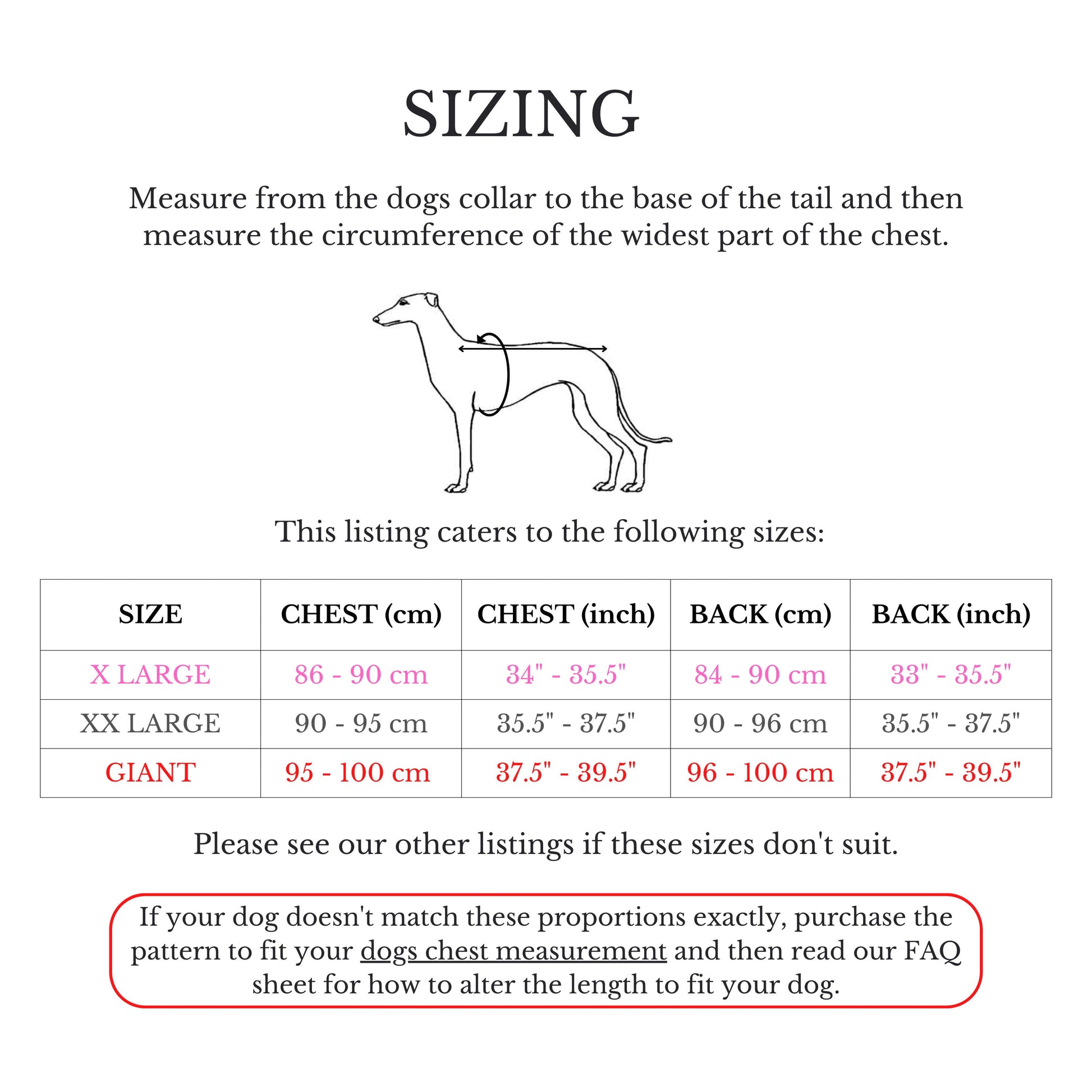 A PDF sewing pattern designed for greyhounds and other deep-chested sighthounds. Includes both turtle neck and t-shirt variations with sleeve/hem options.