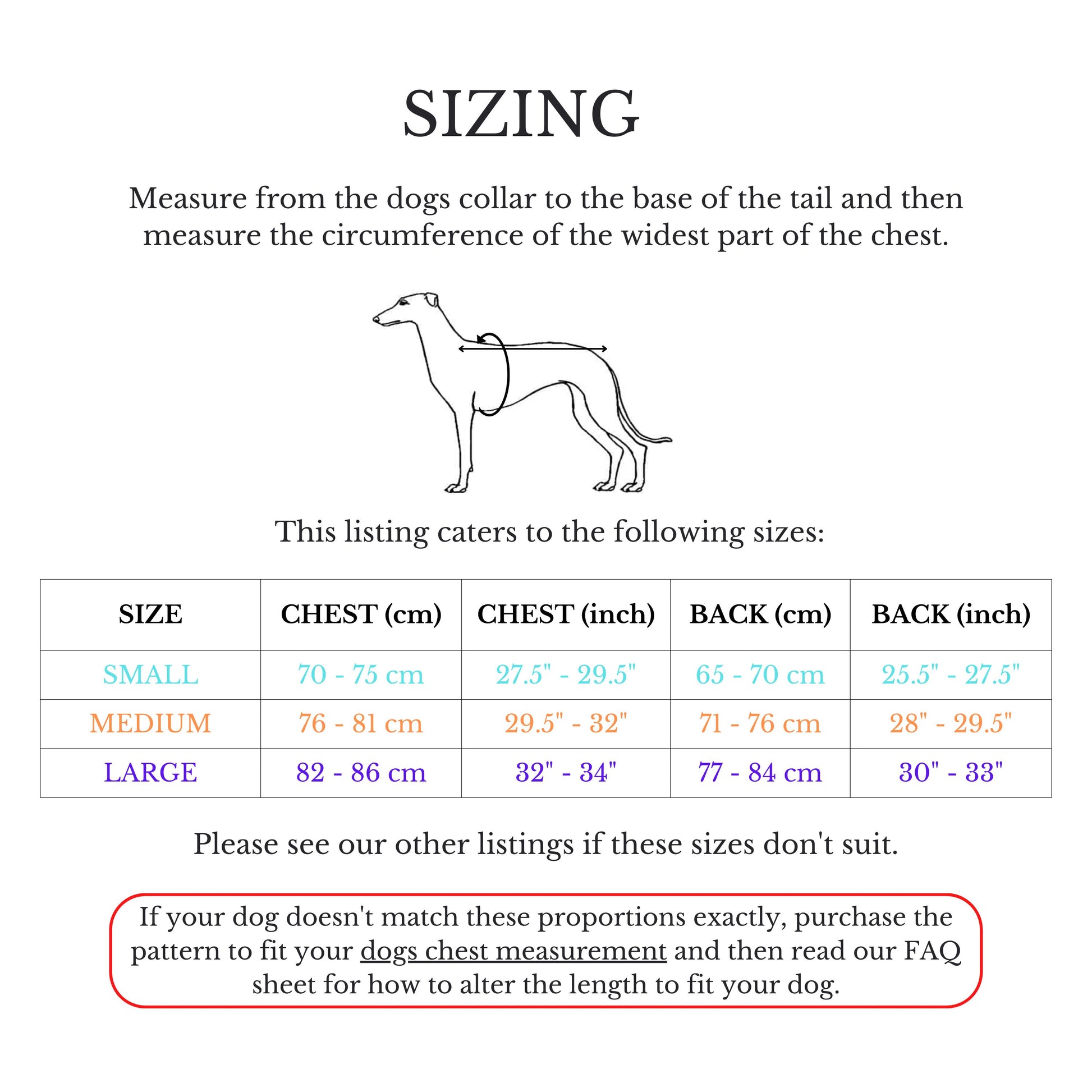 Sew cozy 4-leg pyjamas for your greyhound with this easy PDF sewing pattern – designed for deep-chested sighthounds such as greyhounds.