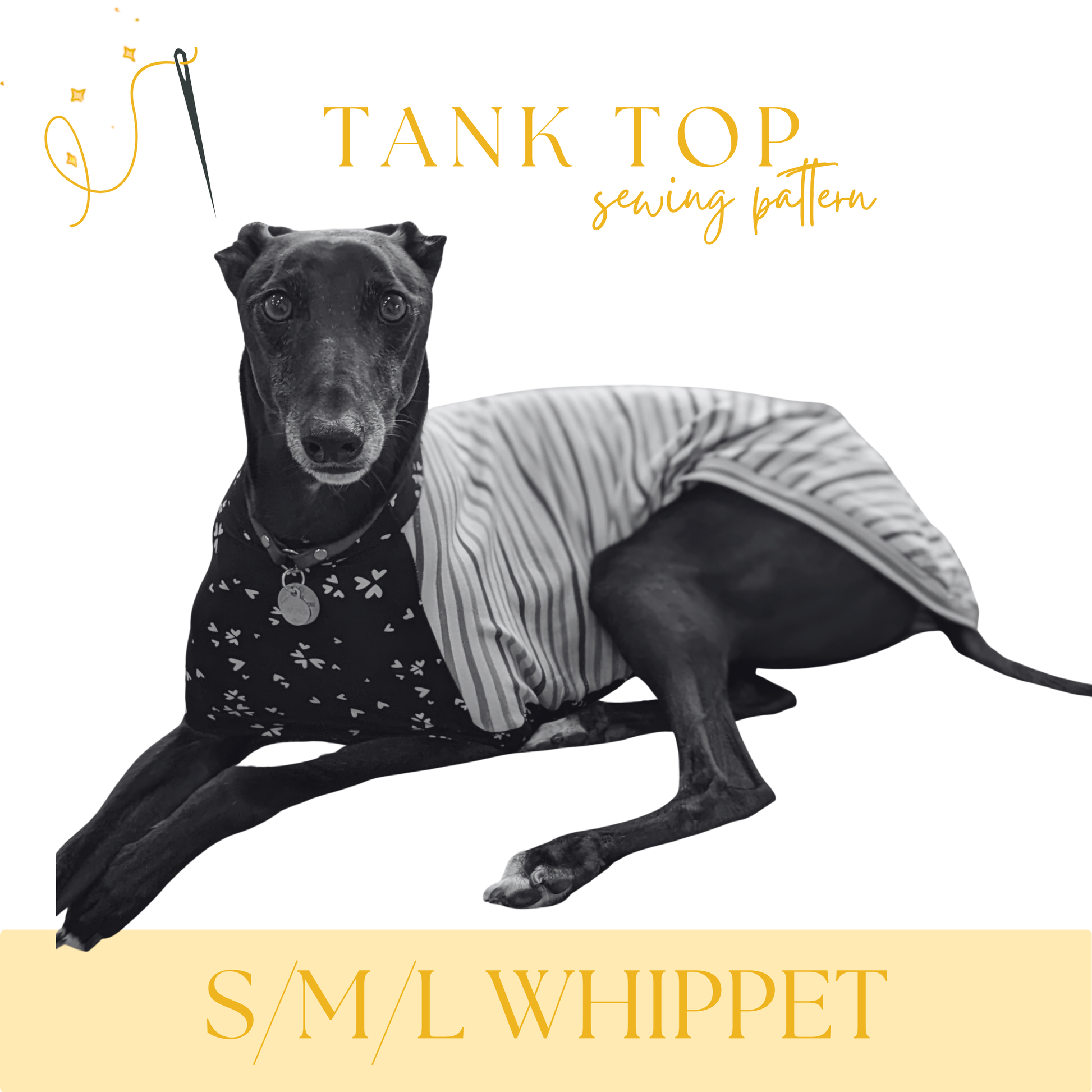 Sew a quick tank top or t‑shirt for your whippet or sighthound using this easy PDF sewing pattern — perfect for beginner sewers!