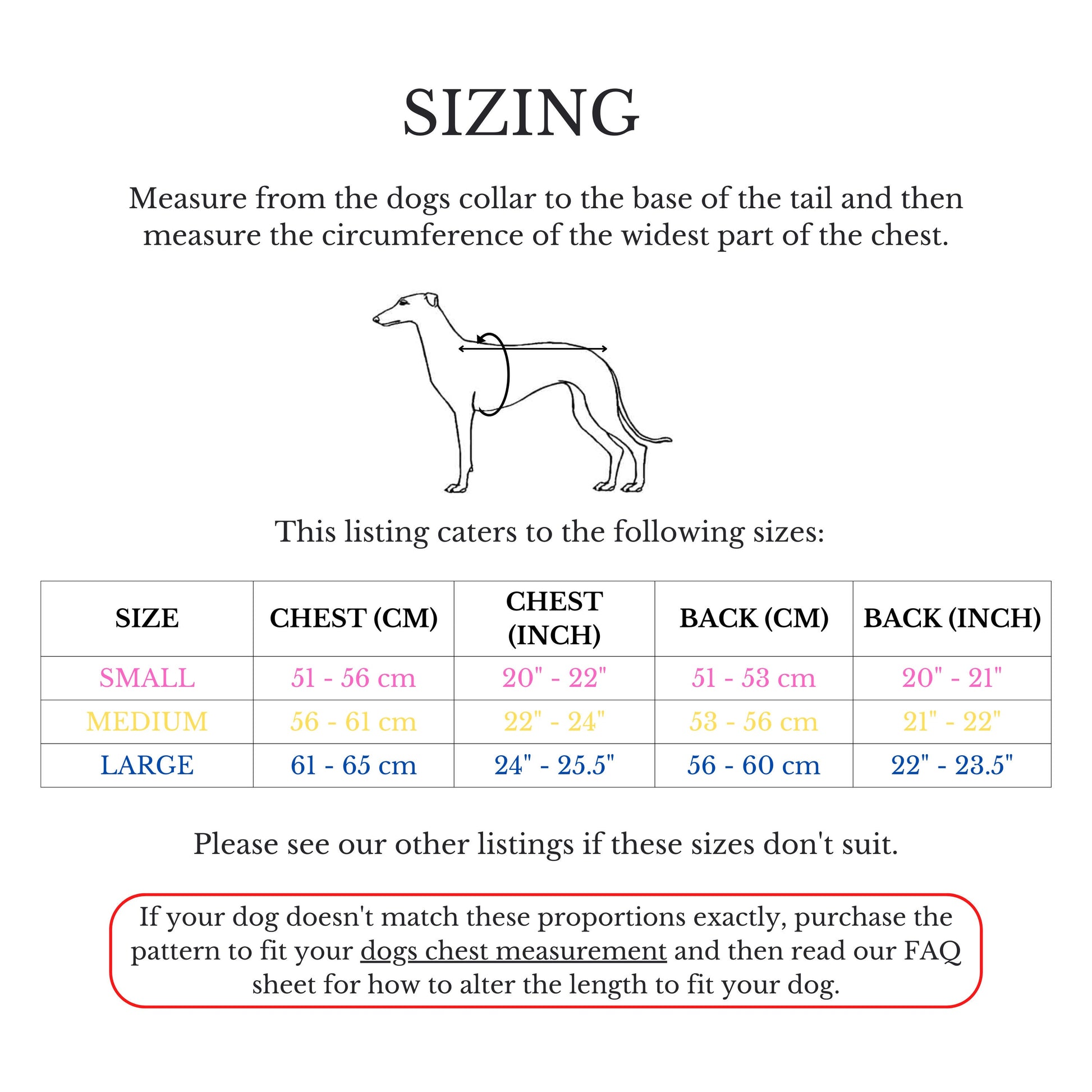 This PDF sewing pattern allows you to quickly make a tank top or t‑shirt for sighthounds like greyhounds, whippets, galgos, or lurchers. It’s a perfect scrap-busting project and ideal for beginner sewers looking for a quick project.