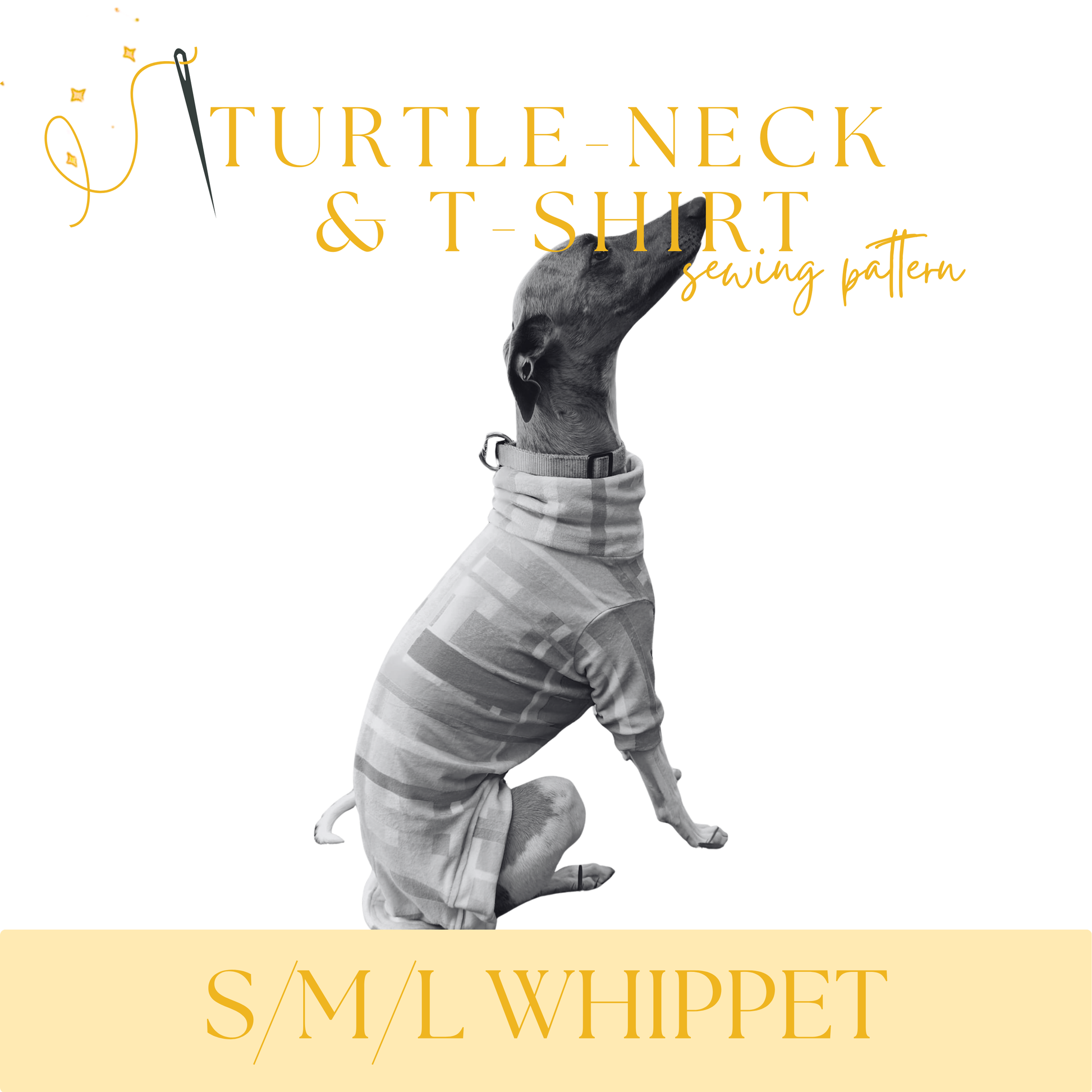 Sew a stylish turtle neck or t-shirt for your whippet with this printable PDF sewing pattern!