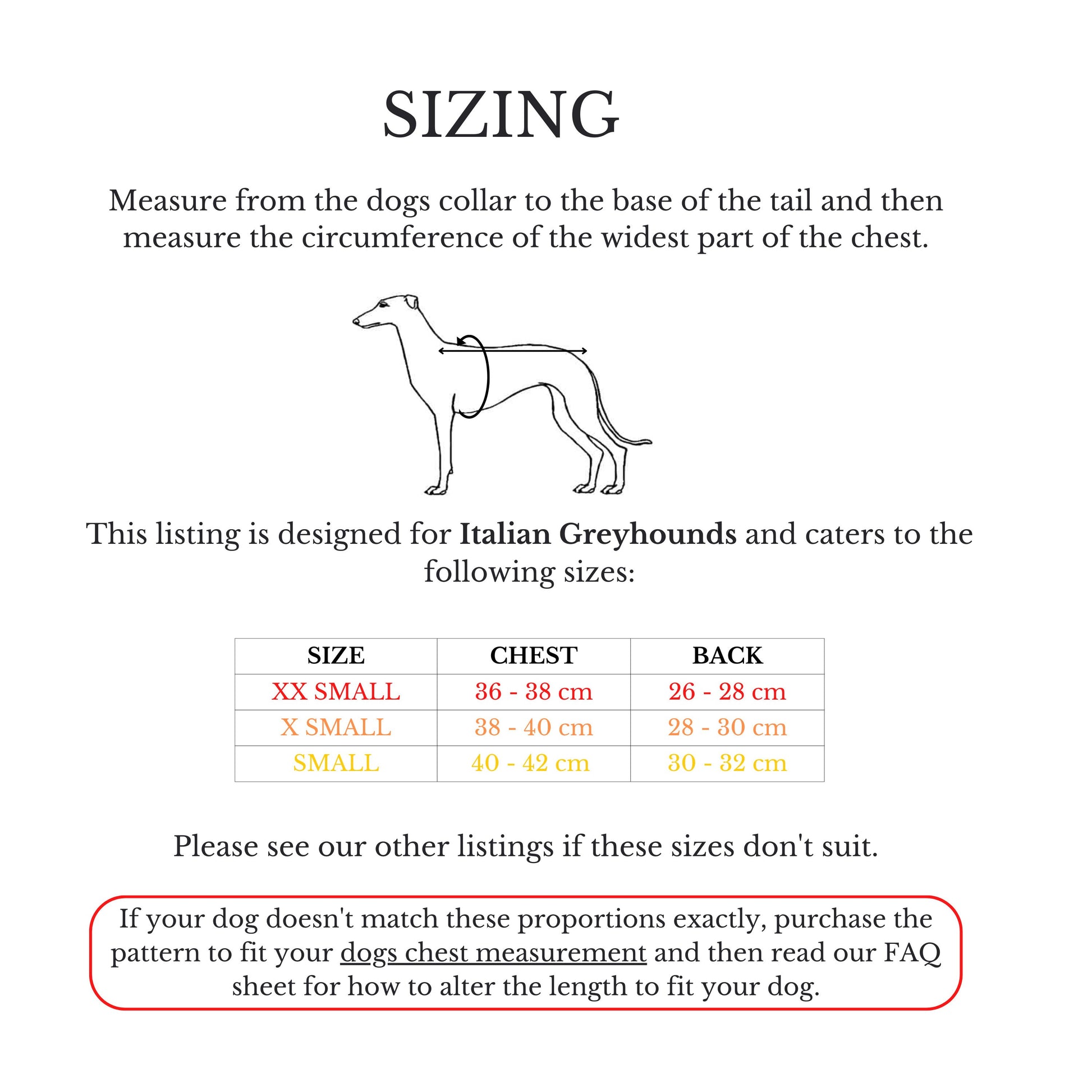 Sew a stylish turtle neck or t-shirt for your Italian greyhound with this printable PDF sewing pattern!